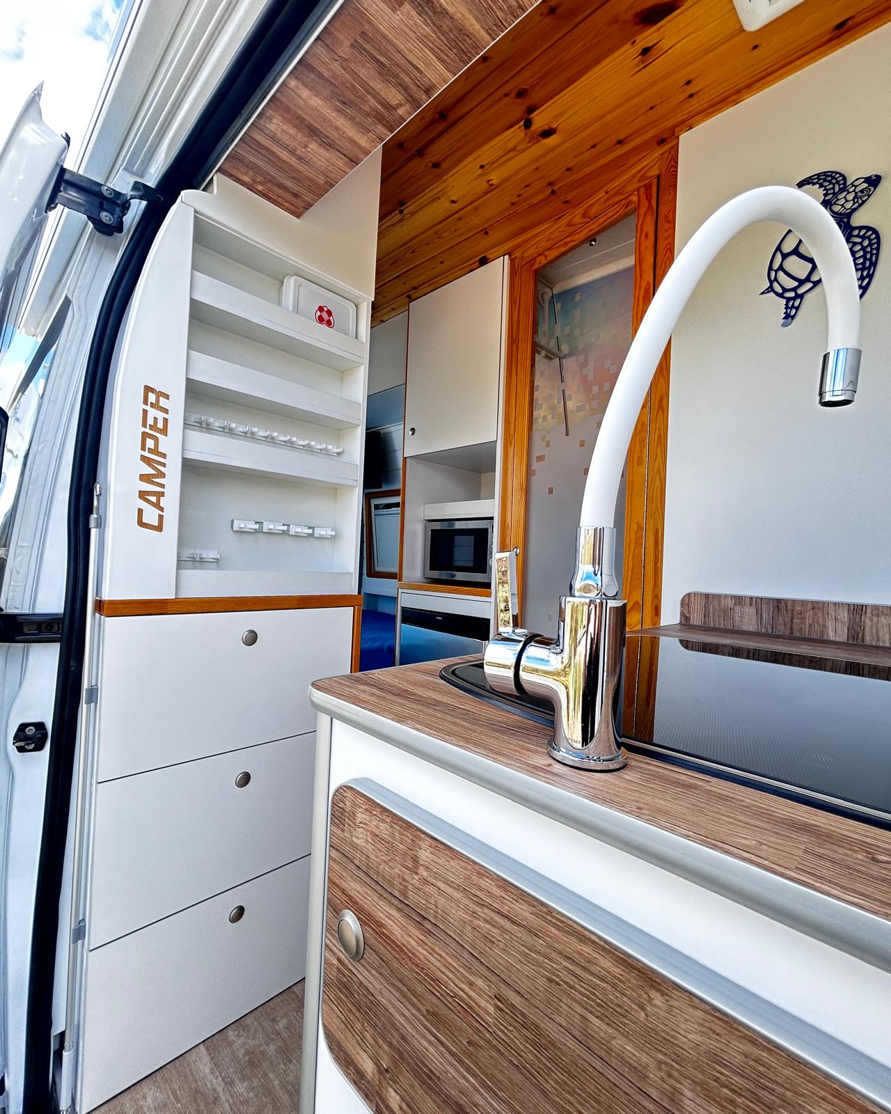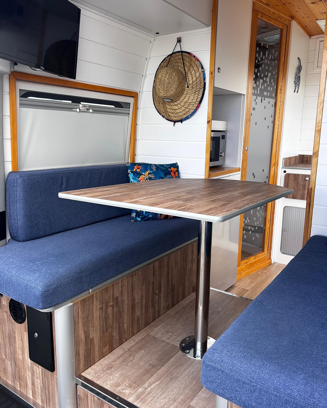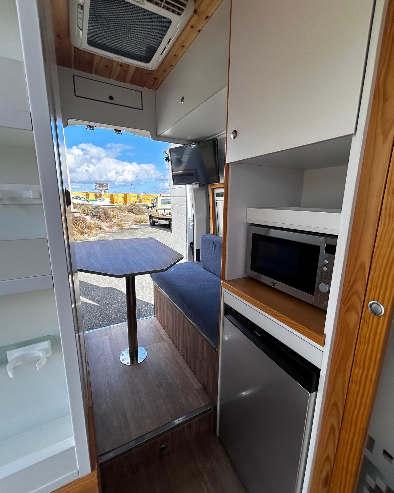 - Gran capacidad de almacenamiento en armarios, bajo sillones del salón , bajo mesa, sobre cabina, debajo de la cocina y pequeño armario en el baño