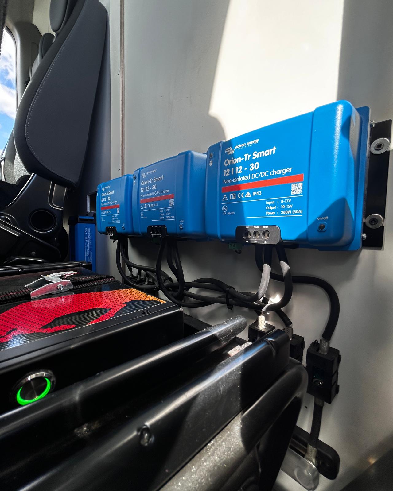 - Sistema de carga victron con 3 oriones que dan 90 amp hora
